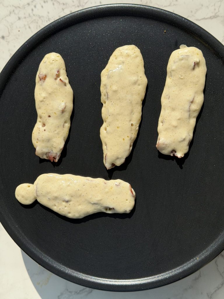 - There may be more batter than needed, just cook off the extra as plain pancakes.
