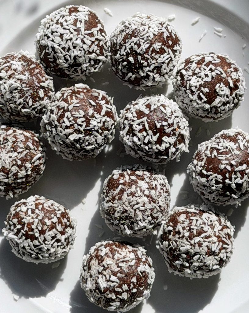 They’re soft, fudgy, chocolatey, and rolled in extra coconut for a lovely finish and a bit of texture. They can be nut free if you use oat flour, which makes them perfect for lunchboxes or sharing.